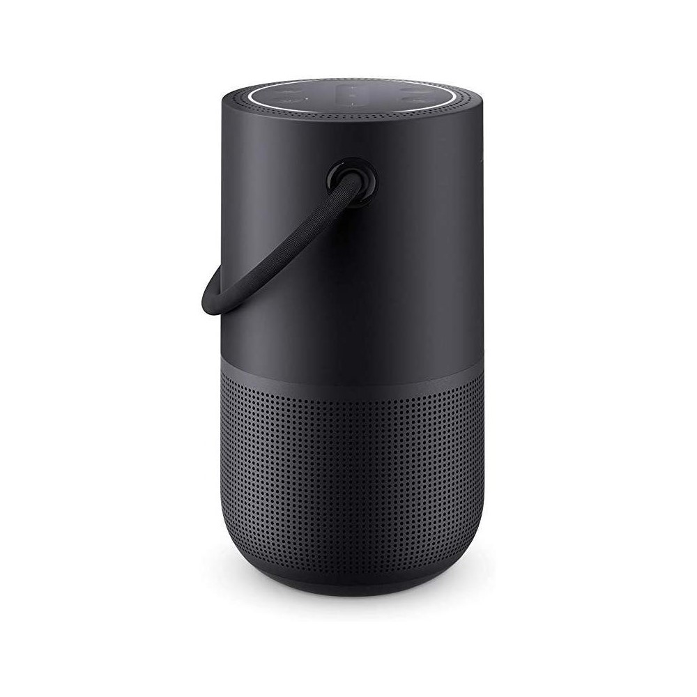 El Bose Portable Home en color negro ofrece portabilidad, calidad de sonido estéreo amplio, control por voz con Alexa, y la capacidad de reproducir servicios de música a través de Wi-Fi, todo gestionado de manera conveniente a través de la aplicación Bose Music.
